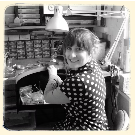 Jenni spent 8 years based in the Birmingham’s vibrant Jewellery Quarter after which the business moved to Staffordshire. Over the years Jenni’s jewellery has been supplied to over 80 retail outlets and galleries across the UK and abroad, including Liberty London. It has also been shown at a number of retail craft shows including Chelsea Craft Fair, Origin and the Contemporary Craft Fair, Bovey Tracey. Throughout the years, inspiration has come from many aspects of everyday life. The style of Jenni’s work is elegantly wearable with a touch of humour: the original and largest collection was the washing range with smaller collections based on cooking, paper chain people, ransom notes, birds on a wire, dressmaking and mid-century style being added over the years.